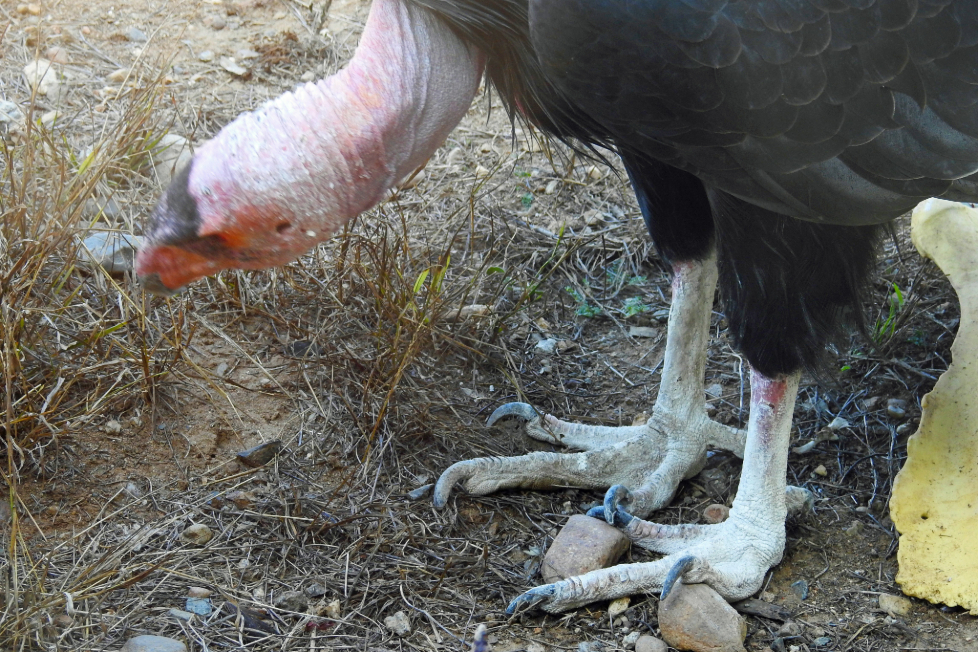 Figure 4. Vultures (e.g., this California Condor) excrete watery waste onto their legs. By also increasing the volume of blood circulating through the legs, they cool off more effectively.