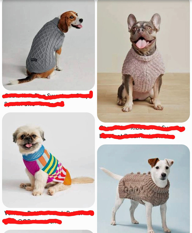 Also, sometimes what you want doesn’t exist, as far as you can tell by looking for it. For instance, I needed a sweater for my pup, who had recently had all her fur shorn, but she absolutely hates having me put anything over her head, and she does not like me to lift her feet to put them into “armholes.” I could not find one single sweater that fit the needs of my pup, so I had to knit something that would work. You can see the result in my blog, https://bird-brain.org/2025/03/17/sweeties-knitted-cloak-or-sweater/