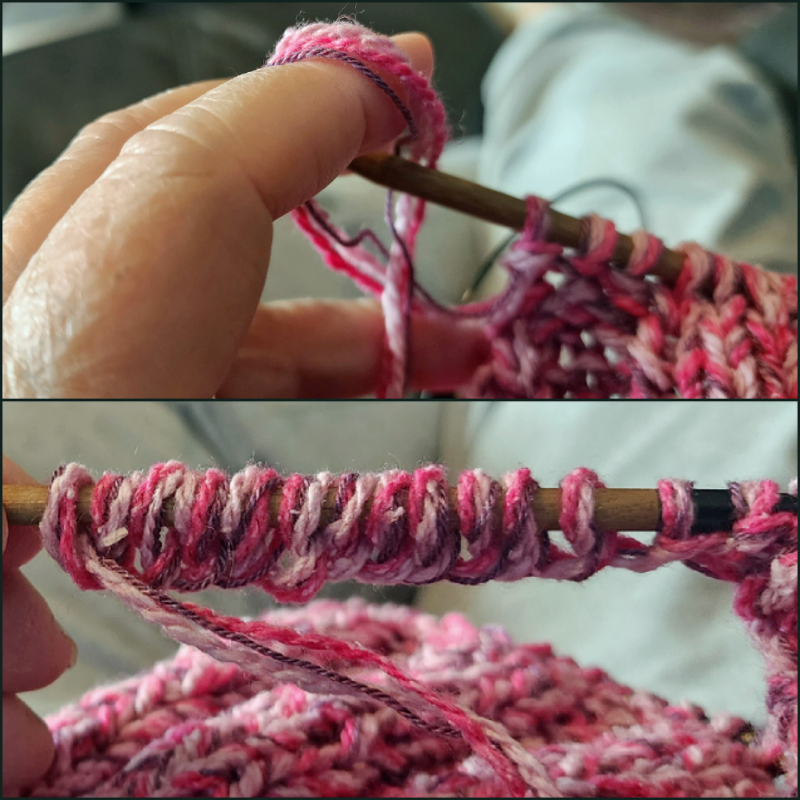 YIKES! I apologize in advance if you’re left-handed. I’m showing my right-handed bias when I refer to “left-hand needle” or “right-hand needle.” You’ll have to mentally make note of my error. BOTH of my granddaughters are left-handed (as was my mom); they know the pain of right-hand prejudice!