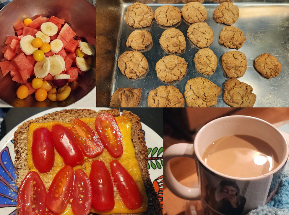 Figure 04 (a&b). Four of the five key tastes: sweet (fruits, cookies), sour (lemons, lemon juice), bitter (coffee), and umami (cheese, tomatoes); cheese has a little salt, so maybe all five?