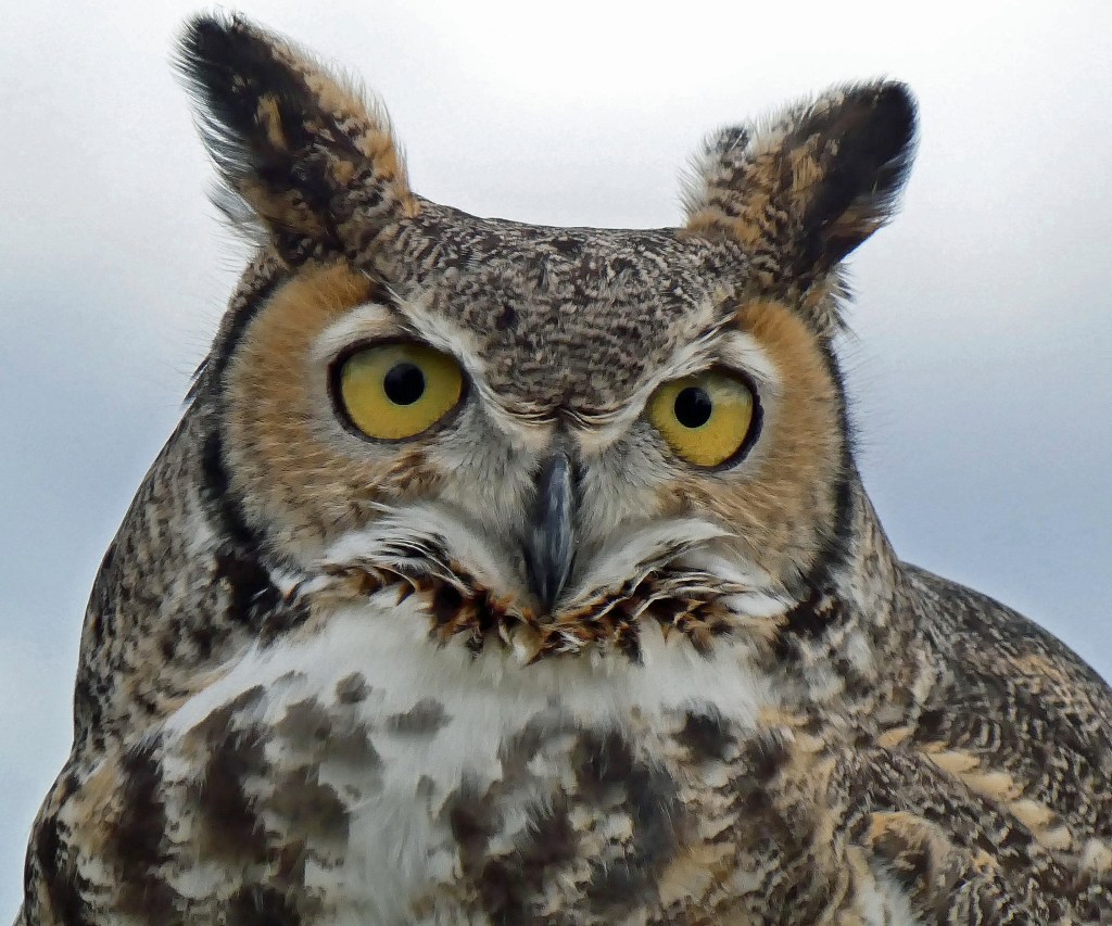 Unlike most birds, we humans have both of our eyes facing forward, with overlapping visual fields. As a result, we have excellent depth perception, but we can’t see anything behind us, and we see very little at our sides, unless we turn our heads. Owls share our viewpoint, but most other birds don’t.