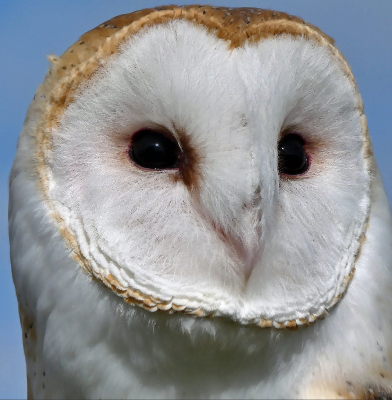 Figure 05a-d. Diurnal birds of prey (above), such as this Ferruginous Hawk and this Red-tailed Hawk have astonishing visual acuity, even better than human vision, but they have poor visual sensitivity, not able to see well in dim light. Nocturnal birds of prey (below), such as this Great Horned Owl and this Barn Owl, have poor visual acuity, but phenomenal visual sensitivity, spotting prey in dim light.