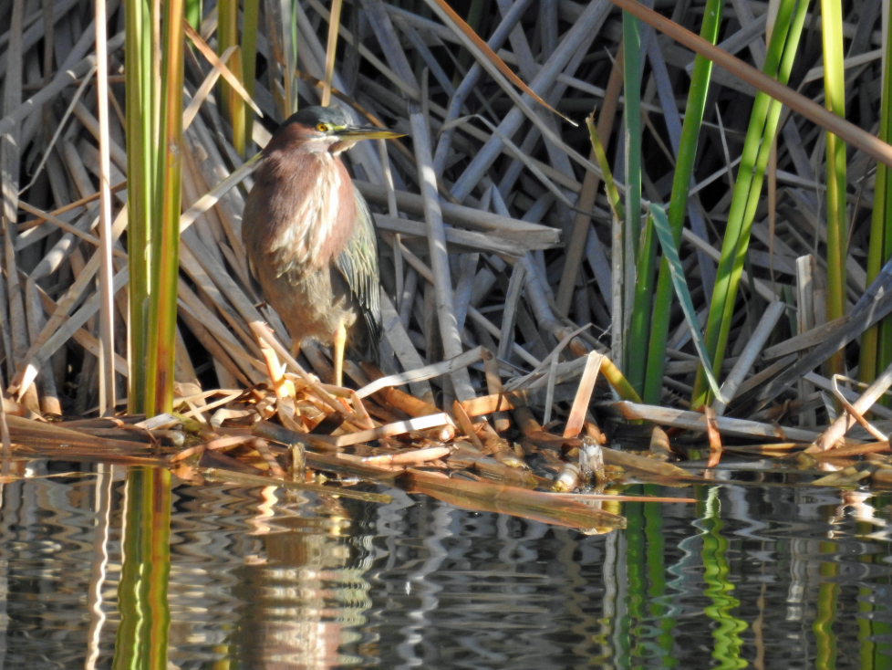 Figure 02. Despite their exquisite colors, Green Herons seem to blend into their reedy environments. Green Herons are also among the few species of birds who use tools, providing lures to attract fish to within reach.