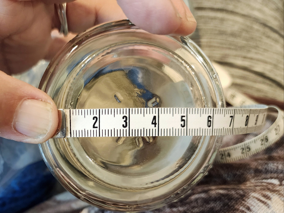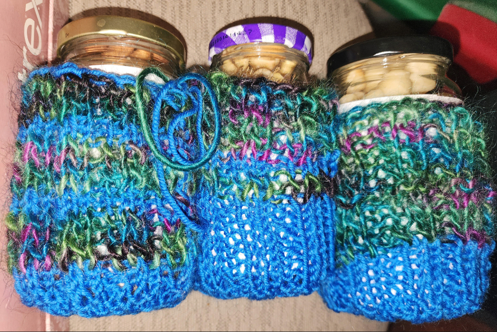 - Choose your jar or jars. Measure your jar’s dimensions. Your jar may differ from the jam jars I used. Make a note of your dimensions. If your jar is wider than the ones I used, you’ll need to add stitches to each row. If narrower, you’ll need to subtract stitches.