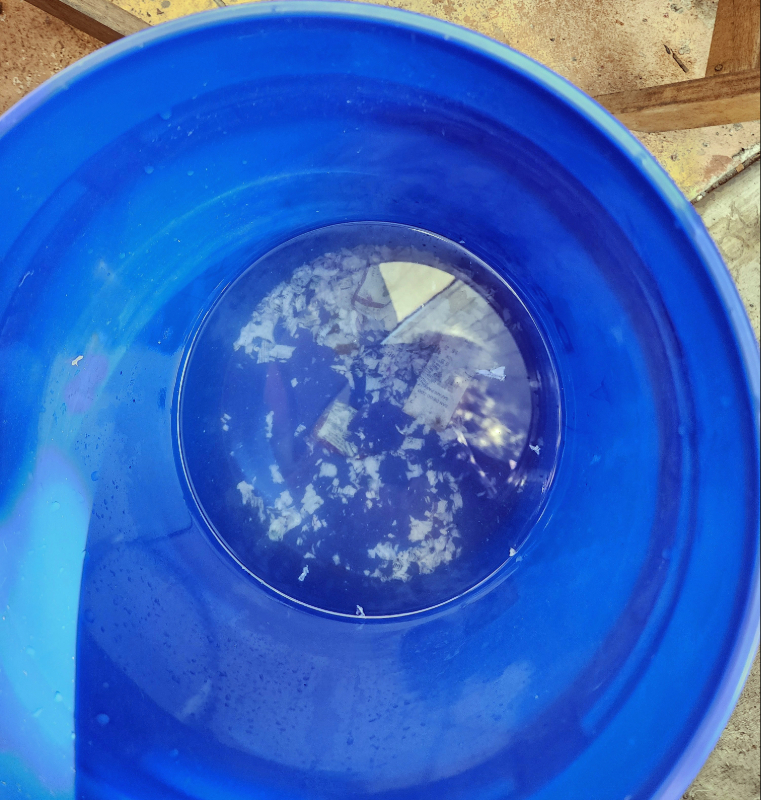 Figure 06. If you decide to remove the label from the jar, it’s easier to do if you soak the label first. If you have a bucket, it’s easier to keep your sinks free for other uses. I had time to soak the jars overnight, but if you don’t, any amount of time soaking will make removal easier.