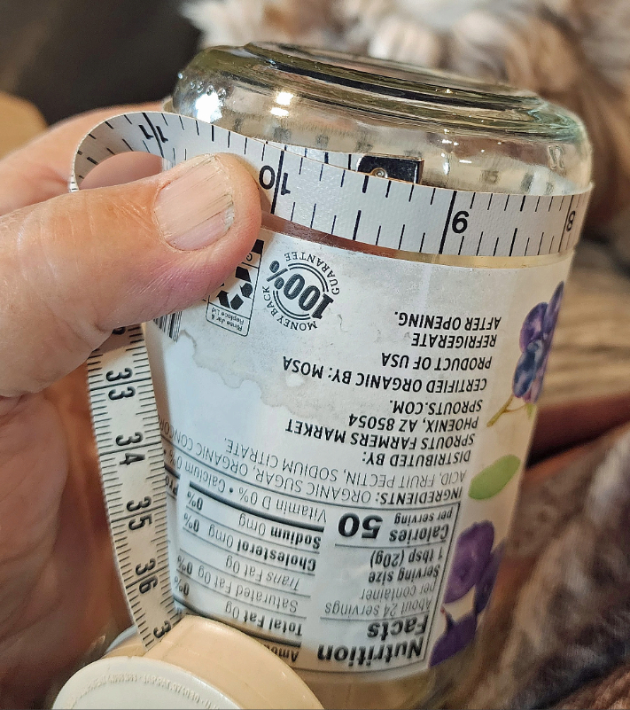 Figure 07a–f. Note the dimensions of your jar: circumference (around the sides), diameter (straight across the bottom), height (from bottom to just above where the label can be seen).