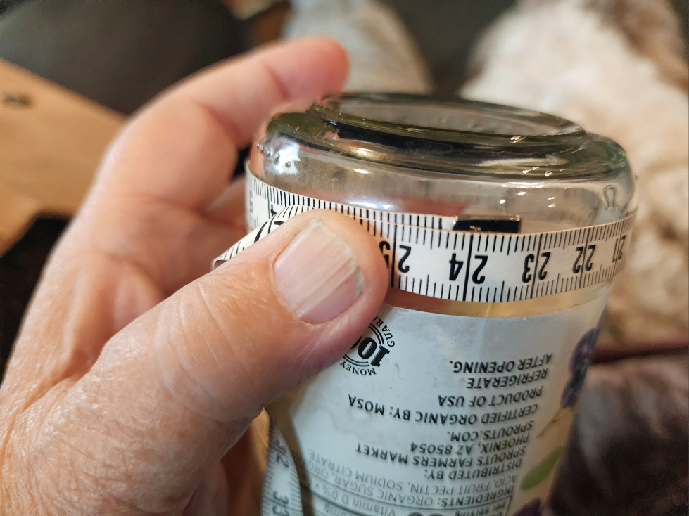 Figure 14. Compare the width of your cozy against the width of your jar. Does it wrap well, without being too tight or too loose?