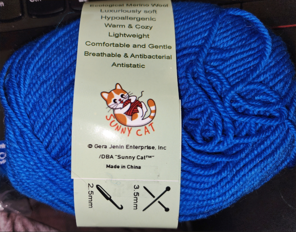 Figure 21a–b. Main yarn: SUNNY Cat Merino Wool Yarn, Royal Blue; SKU: MER-39, ItemNo: MER-210; 4-Strands Australian Merino Wool; 100% Pure Merino Wool Yarn. Length: 120 meters / 130 yards (+/-5%). Weight: 50 grams/1.75 ounces(+/-5%). Ecological Merino wool, luxuriously soft, hypoallergenic, warm & cozy, lightweight, comfortable and gentle, breathable & antibacterial, antistatic. Use US 4 (3.5mm) knitting needles