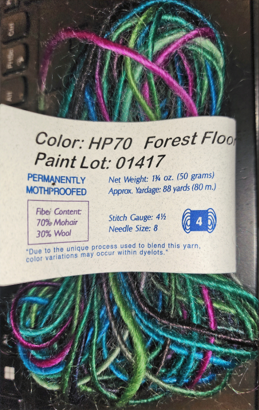 Figure 22–b. Alternative yarn: Handpaint Originals, Brown Sheep Company, Inc. Color: HP70 Forest Floor; Paint Lot: 01417; permanently mothproofed. Net Weight: 1.75 oz. (50 grams). Approx. Yardage: 88 yards (80 m.)