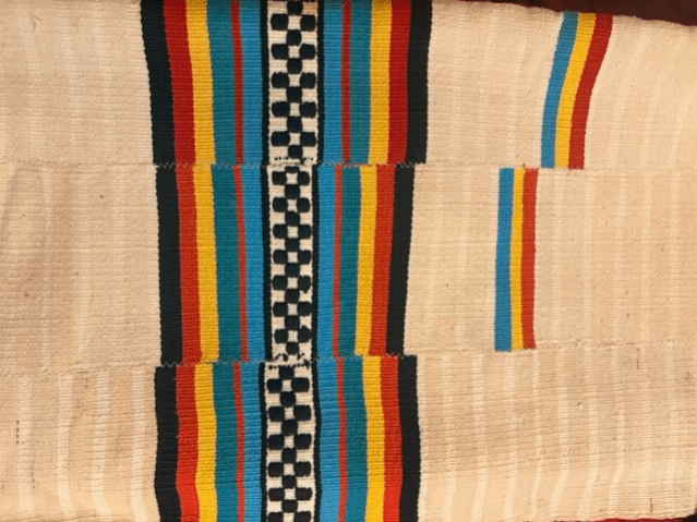 In 2019, when the U.S.A. House of Representatives commemorated the first arrival of enslaved Africans on these shores, four centuries earlier, several leaders (e.g., John Lewis, Nancy Pelosi) wore kente cloth stoles. Traditional kente cloth is made of 4″ strips, with 24 strips sewn together to make a single fabric, which could be worn as a wrapped robe (like a toga).