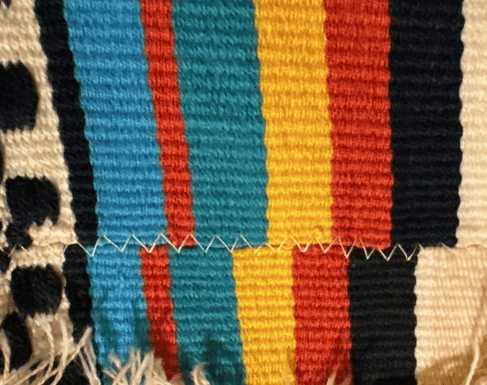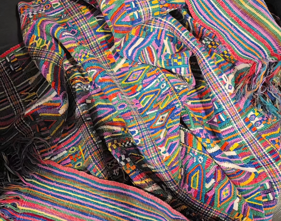 While weavers continue to use backstrap looms (see https://en.wikipedia.org/wiki/Loom#Backstrap_loom for images of these looms) for making a faja, they’ll use a floor loom (introduced by Spanish invaders) to make the wider corte cloth. Each local area will still use designs traditional to their region, but they’ll also explore designs from Asia and other places. Over time, color choices have become less specific to a given location and more globally diverse.